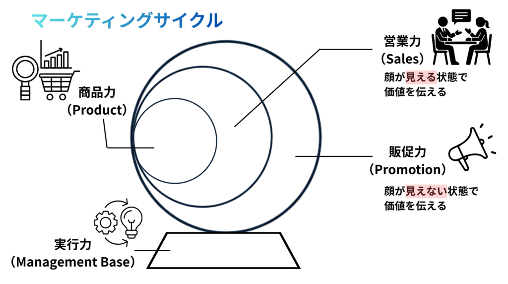 販促力だけを強化しても、商品力や営業力が伴っていなければ成果は出ません。販促とは価値を拡声するための手段であり、土台となる商品理解や顧客理解が欠けていると機能しなくなります。