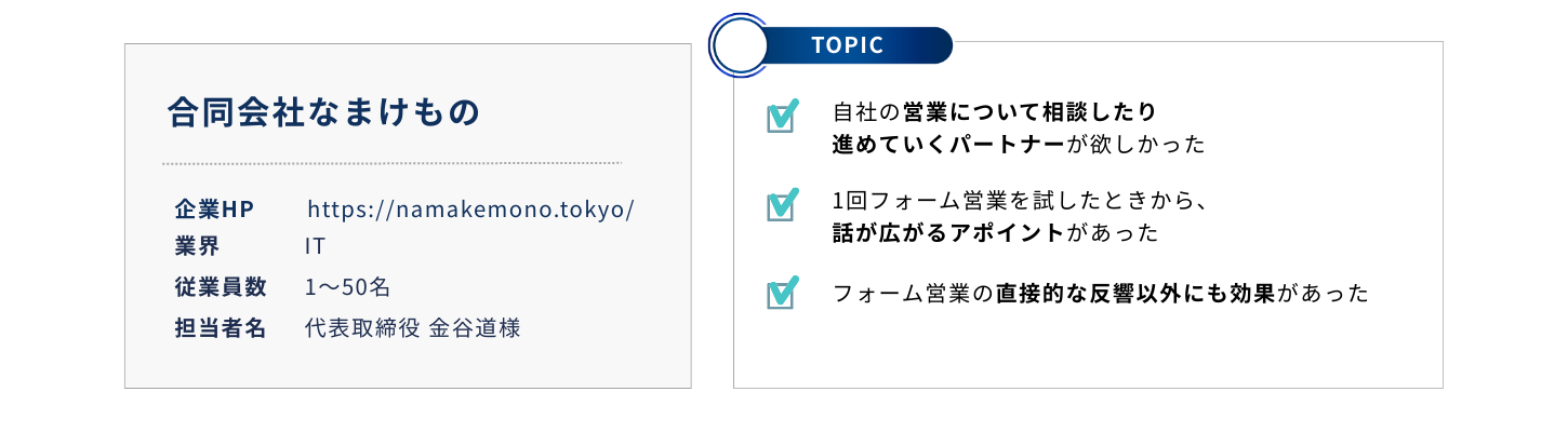 フォーム営業の直接的な反響以外にも効果があったのでやってみたほうがいいと思うし、やった方が早いです。